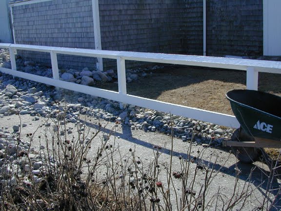 Last Sunday morning I went out to the yard and cleaned up as best I could. I attended to walkway until I reached a point where I thought it best to stop. I also cleaned up the small plot that is home to the memorial plinth for George Downton. The discovery of the day was the plumbing for a former water fountain, tucked in among the sea roses. The tide and winds have been a blessing this week and no great tide is expected before the 26th. I will be working on pulling the rocks away from the runway this weekend as a few of the floor boards have noticeable rot from the manner in which the stone sits against the building not allowing the moisture to wick away. The photos are below.