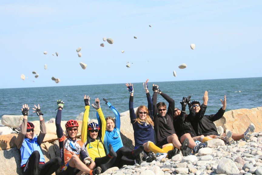 These two pictures are from today. Christopher Annear from Boston University had made the ride down with his group from Boston to enjoy the wind and the salt and the views. I was correcting when I noticed them lounging by the wall and I called to Julie to grab the first shot. She went out; met them and swapped stories. A few minutes later this became a different story when en mass they began to shovel stone over the wall and onto the beach. I went running this time, got Julie to count to three, and hit the shutter. We are now celebrating with the stones here on Cedar Point. Thanks to all!