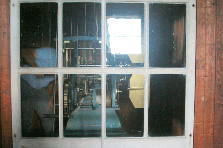 Later that afternoon I go to go to the top of Lawson Tower and help wind the clock. Haley came with me and these are her pictures that follow. Trustees Steve Litchfield and Tucker Paterson have been part of the team that winds the clock for several years now and they offered an opportunity I have wanted since I saw the Peter Whitfield production on Lawson Tower three summers ago. I had only been inside Lawson Tower once before, when the late Paul Miles took me up and showed me some of the elements that make it unique. The Society has done a tremendous job creating and developing a landscape project that includes a plaque describing Mr. Miles contributions to maintaining Lawson Tower. There is even a Lawson Rose in the mix. That plaque will be unveiled on July 18th at noon prior to the Society opening the Historic sites generally for the first time this year.