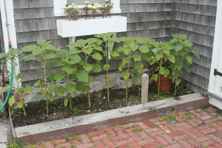 This week reversed the adage – it went from hottest, to hotter, to hot. There were some tough nights for sleeping, even here where there is always some sort of breeze. Early in the day Monday a thermometer in the kitchen read 122 degrees outside. The bulb sits just outside the kitchen window and the sun pushed it toward melting. Getting a hose out across the parking lot to all the islands was a priority and I had help from several neighbors. These gardens continue to prosper and the perennials that have been mixed in look like they will make it. The second year will see very hardy plants along with the potential to split some down and get greater yearly coverage. Five of six new rose bushes have shown terrific growth. The sixth still has a chance if I pare off some old growth. The sunflowers along the runway are getting very close to bloom. If I can keep them watered the fall brides will have the back drop I was shooting for when those seeds went in the ground.