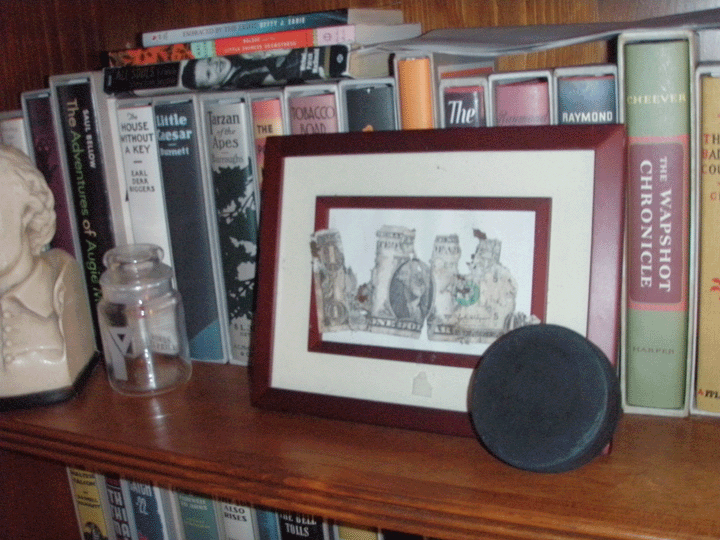 One topic that came up again and again over the weekend was the debris thrown up by the ocean across the winter storms. I have a tattered dollar framed and on a shelf here, and several youngsters wanted to know the story behind it. I told them of the earlier post where I shared its discovery. I also told them of the strangest thing found in the detritus – two hockey pucks. It was a light hearted break from the heavier history. You could see the wheels turning in their heads considering how two hockey pucks could have washed into this yard.