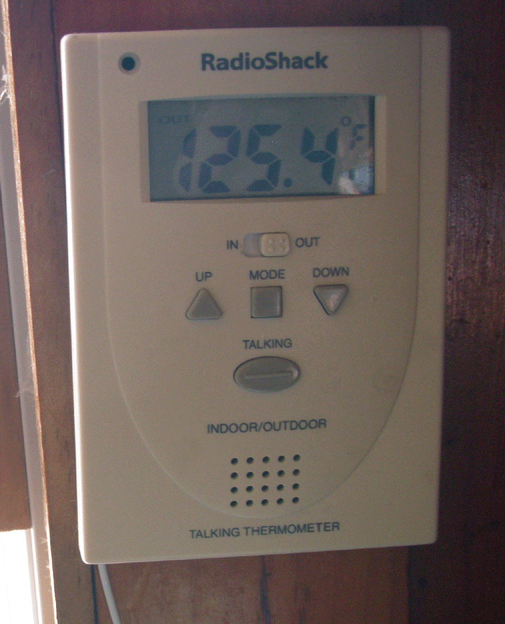 After one of the driest summers on record, with nearly every day an image of San Diego skies, we get a visit from Hurricane Earl tomorrow and Saturday. The image above is from a thermometer we have in the kitchen. The highest temperature we saw there was 136 degrees but we did not take a picture. I think we got the Klondike bars out to cool off instead.