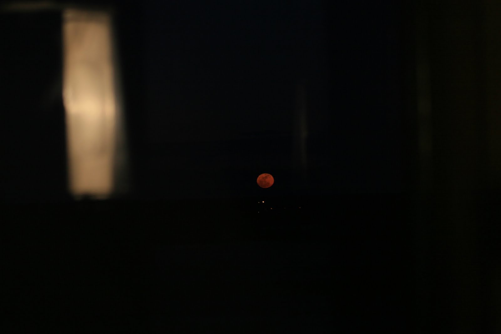 Last Saturday marked the closest passing of the moon to the earth in 18 years. The first cameras arrived at 5:10 for a 7:15 moon rise. I had been anticipating the angles for 10 days and thought I had my spots picked out. I had two film cameras ready and the digital on a tripod to move around with me in the car. The film is still in the camera so I can\’t fill you in on those results just yet. There was a collective gasp as the moon rose and I was in the Tower. The first shot below has an orange glow that will stick with me as unusual. What you see on the left of the image is the Light as it turned. The second is a long exposure I got two hours into the event.