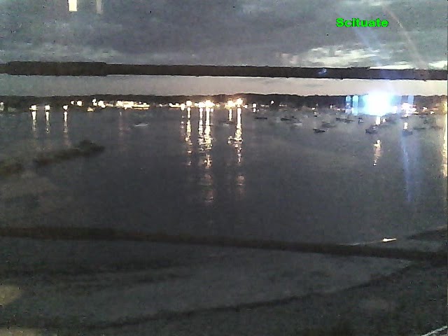 This is a web cam shot taken at 6:00 am as the sun comes up and bathes the boats at the moorings in a soft coral light. The next is from the same camera at 8:30 at night. The bright glow on the right is the Yacht Club.