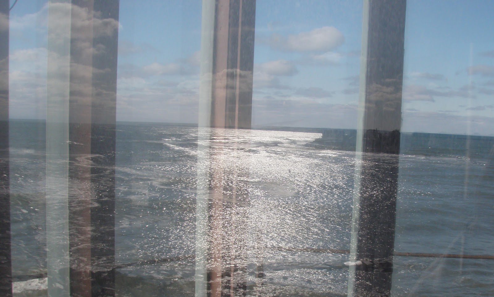 With the lantern back in place I turned my attention to the windows. I have cleaned them all four or five times now and it was a perfect day to go outside for that chore. The wind was down and the squeeqee/towel combination took the brine right off. The prize here was this great shot of First Cliff in the reflection.
