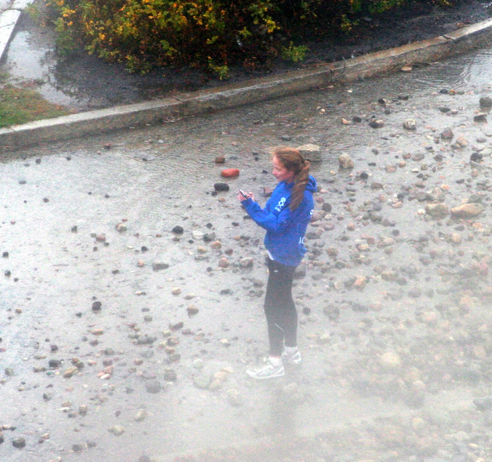 Too close up by the Tower – our man from the middle of the skipping stones photo gets soaked to the skin and knocked on his tail. His friends picked him up and then they walked knee deep through the parking lot.