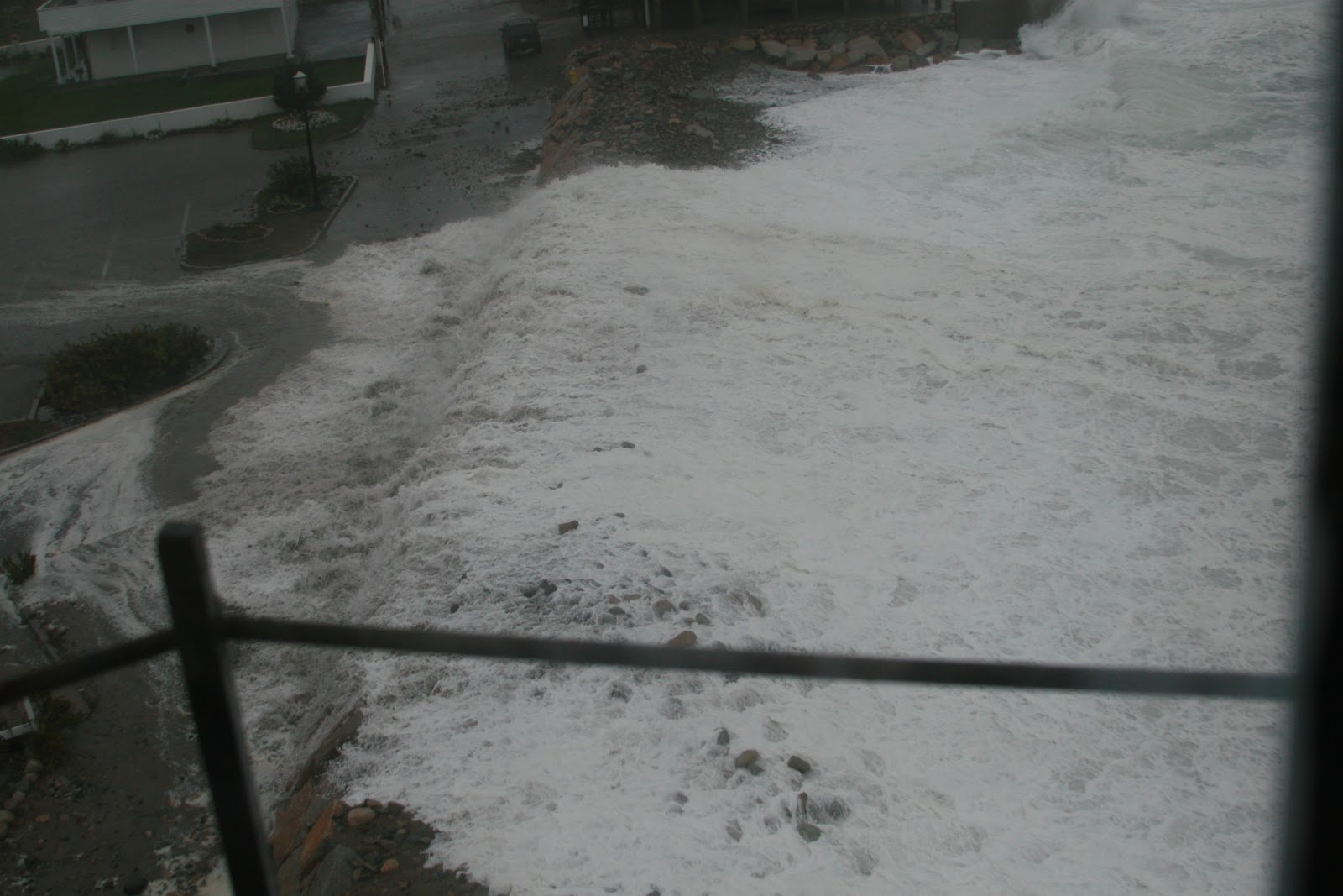 This second one is a composite of the Harbor at around 10:30 this morning. You will want to click on it to enlarge it.  The small jetty was awash 90 minutes before the tide.  In 1991 the capstone to the jetty was washed away and I watched all morning thinking it might happen again.