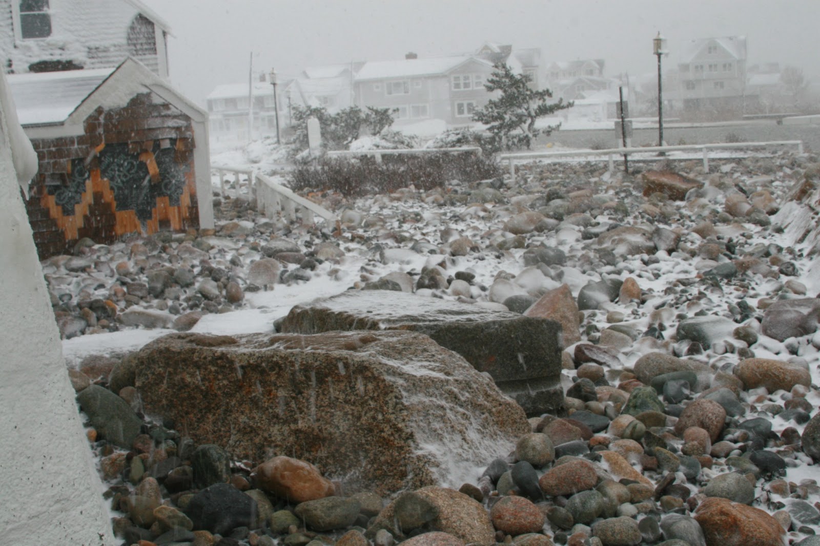 The No Name storm of October 91 was far longer and did a different kind of damage. The Blizzard of 78 had a great deal more snow and all the travel headaches. It also pushed the whole of Sand Hills, Egypt, Minot, and Peggotty Beaches into the road with the snow. The problem with this storm was the loss of power in cold temperatures and the dangers that emerge when water and electricity mix. Pipes broke in several spots causing a ceiling to let go and the loss of some furniture, books, electronics, and the other this and that you find in a house under a bed in a box suddenly full of water. That too has been addressed in part.