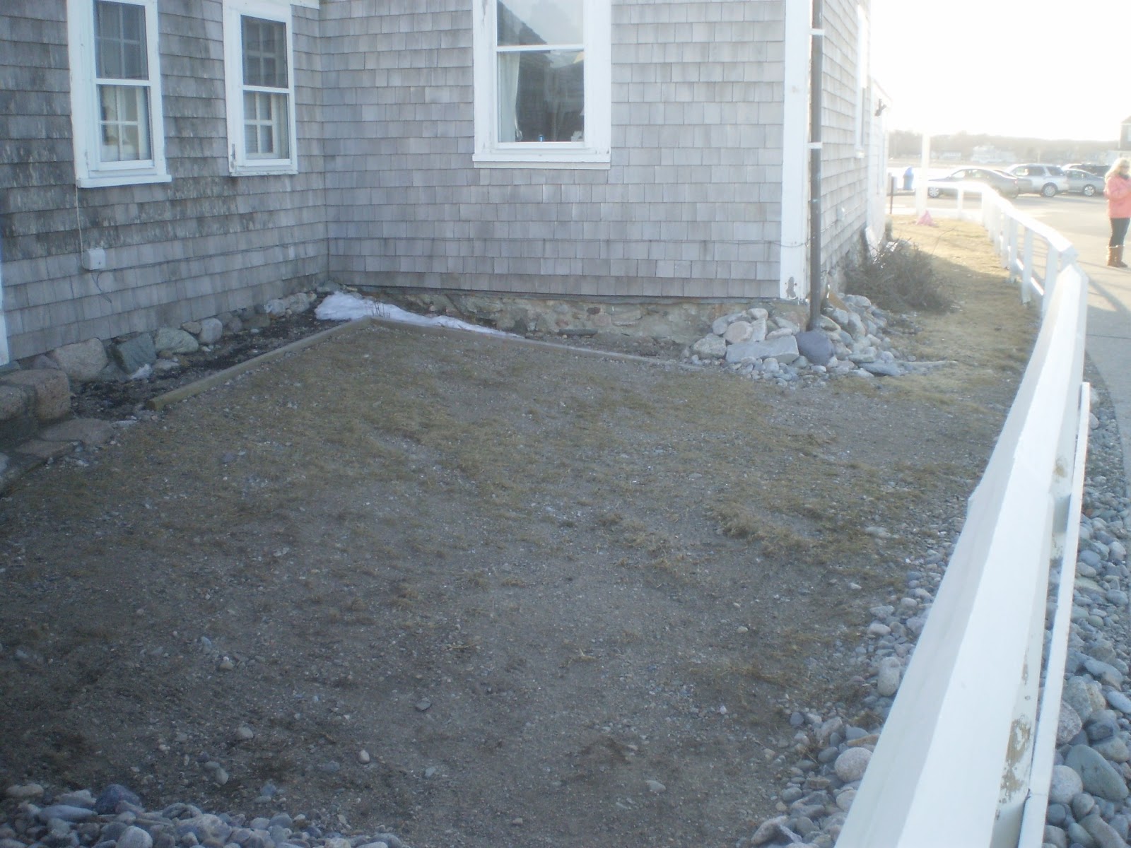 Time to post some before and after shots of the Light cleaned up. There is still some work to do on the Harbor side but the parking lot and the yard are nearly restored to full health. From top to bottom you see the yard then and now, the small garden by the fence with a new wall, and the rose bushes buried then dug out.