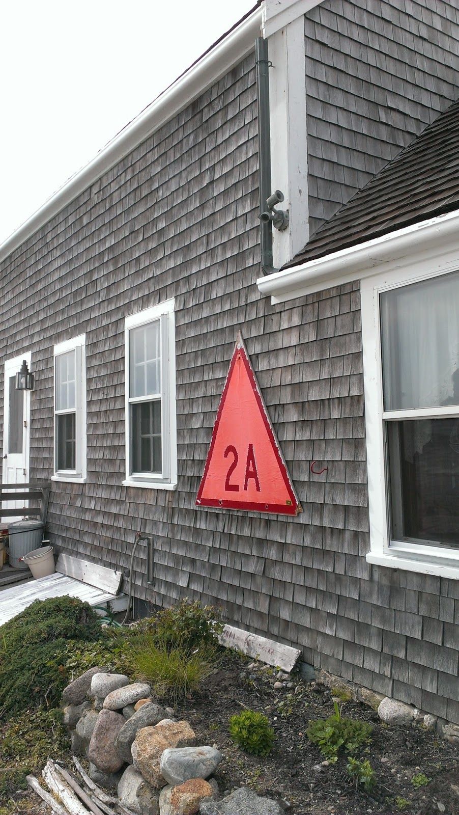 Something that I have neglected to share fell into our laps here on a Saturday morning. This sign was out at the end of the big jetty for 12 years and I managed to snag it and its brothers as the Coast Guard swapped them out for new ones. It looks like it has been on the house forever.