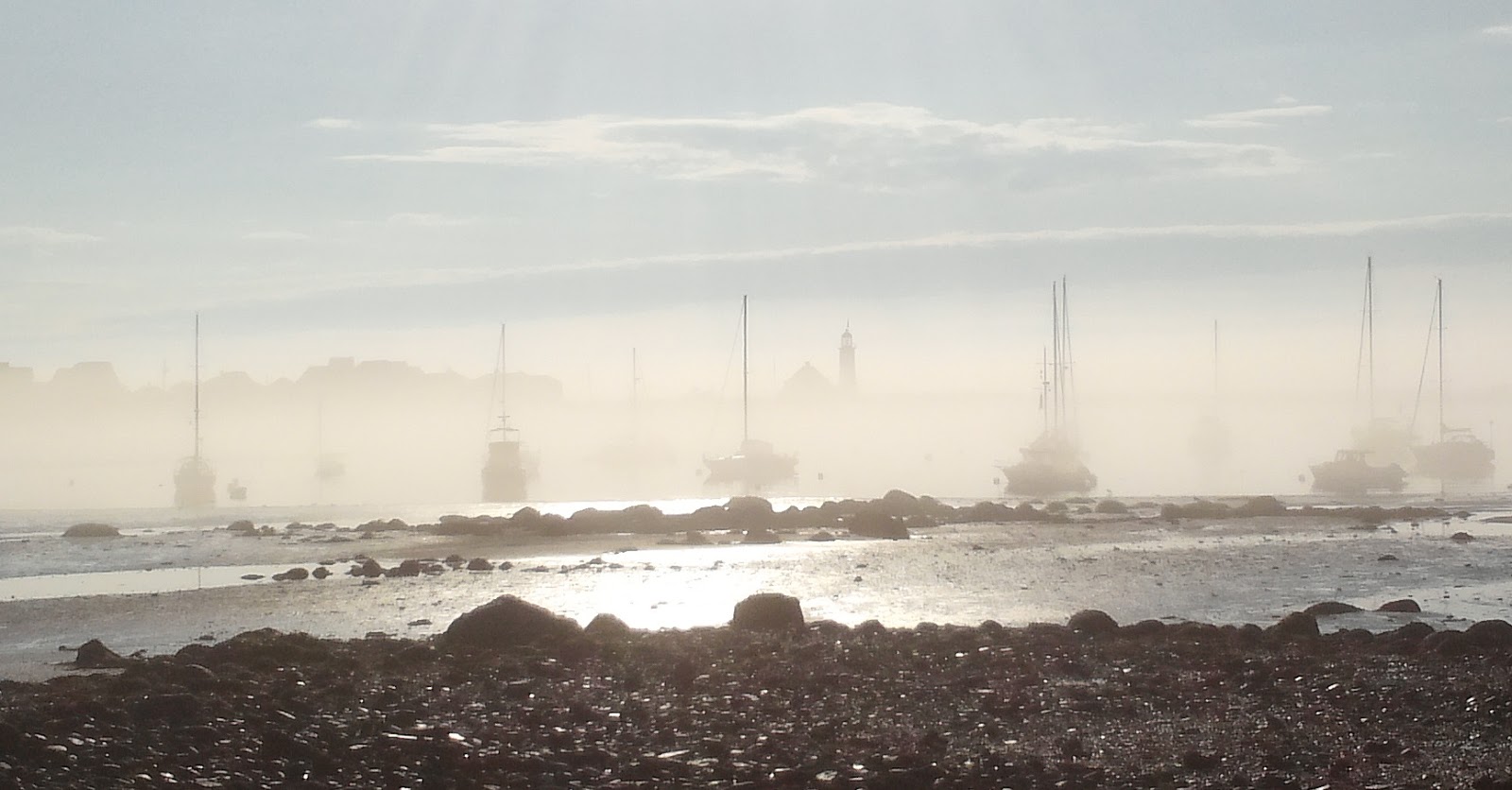 Fog greeted us the last few mornings – complete with fog horn from the spindle light.  It is a long, drawn out, note. Think of a deep beep of a horn in a tunnel. It lasts five to eight seconds and it means you can not see much.  Driving off the Point yesterday morning I stopped at the Yacht Club parking lot and got these shots.