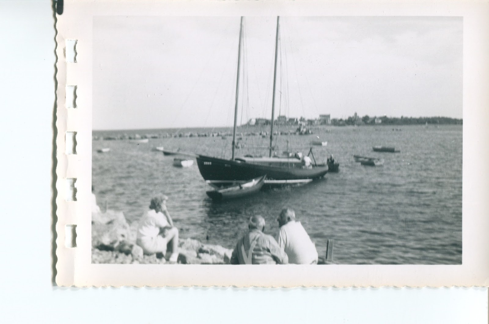 The weekend of July 6th saw a visit from Al Benzanson, owner of the schooner, Green Dragon, built on Lighthouse Road and launched from the beach into the Harbor in the fifties.  His son Andy and Andy\’s wife Amy were along side for a Sunday morning tour of the Light. Mr. Benzanson told me he was an avid blogger and offered a couple of links you might consider. The Green Dragon Facebook page can be found at:  https://www.facebook.com/SchoonerGreenDragon and http://goodmorninggloucester.wordpress.com/2013/05/22/elsie-crew-1921/.  We were thrilled to have the have a chance to spend some time with this family who were here as the centerpiece of the Antique Boat Show cosponsored by the Scituate Historical Society and the Scituate Harbormaster\’s office.  Here is a shot of the Green Dragon going into the water way back when.