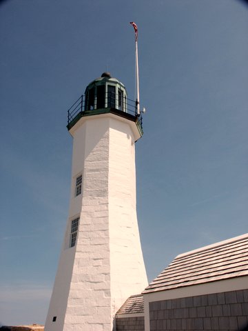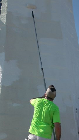Several months ago, David Ball was approached by commercial painter and Sand Hills General Store owner Dan McAdam with a fantastic offer. Dan volunteered his crew and all the materials to paint Scituate Light. On Friday June 19, the Tower was power washed. On Saturday June 20, his crew arrived on the first windless day of the year, to paint the Light. The power washing had revealed just how yellow the Tower was. When Dan and his team finished it was as white as the February snow.