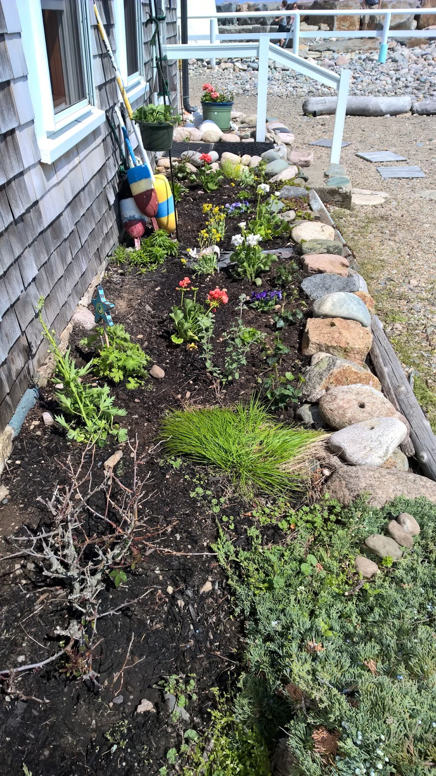 We began to give the gardens some attention as the open house was coming on and our neighbors did an amazing job this year working around all the islands and even bringing some new spots under the green thumb. Thanks go out especially to the Wankums for going over and above building a new garden with me and to Donny Ferreira who took on the ugly chore of cleaning up the overgrown bushes that hold the center of the Lighthouse Park. Thus far the flowers are thriving.