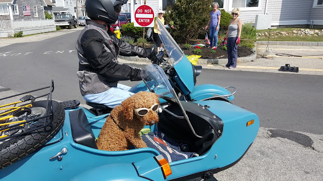 May was another full month. Former street signs got framed and mounted on the cottage. Work on the gardens continued. Its not every day you see a dog riding shotgun. The Edgerton Bell was given a facelift by our friends from Skylight Studios in Woburn. And the prom.