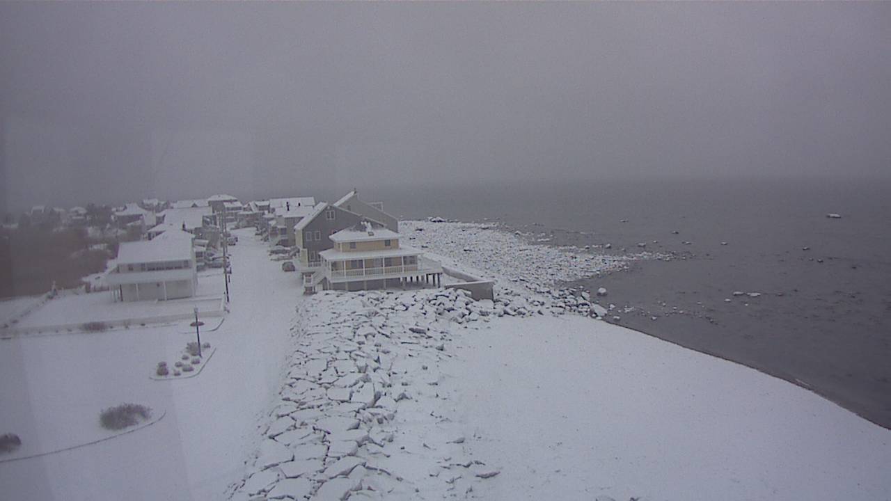 First snowfall – December 2016. The panel in front of the third camera is iced up making that look unavailable.
