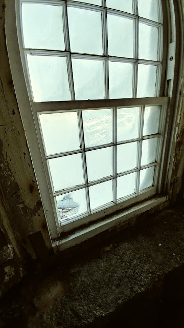 Two small windows were cracked in the front of the Tower and I patched those up with some cut down shingles in a stop gap for now. I will look that over again in the morning as well.