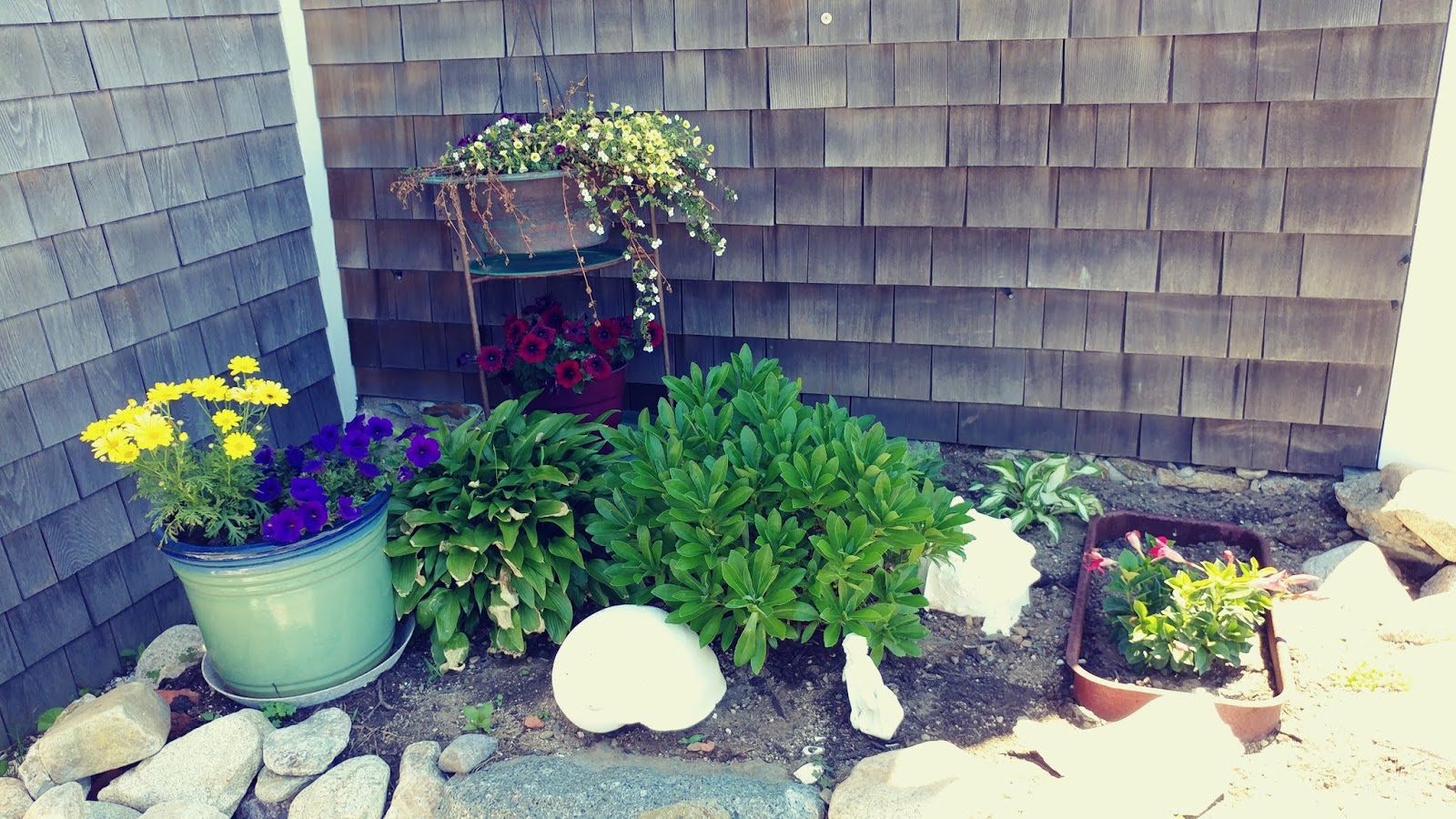 A new garden has been created by the back door. It replaces a dying shrub that go pulled out last year. With time this will be a great entryway to the Cottage.