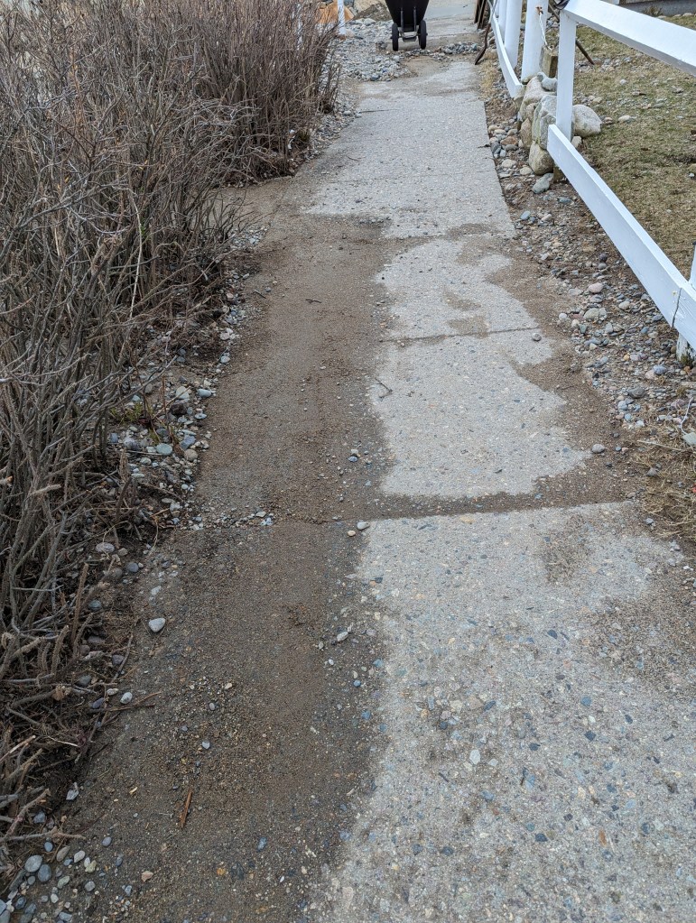The trick is to do a little at a time. At the top of this last photograph you can see where it all gets dumped. The ocean carves out a hole and pushes all the material onto the walk from that hole. The cycle sees me filling it back in with the wheelbarrow and crossing my fingers. It helps when everything is dry. That was not the case yesterday and I will hope for things drying out in the next day or so.